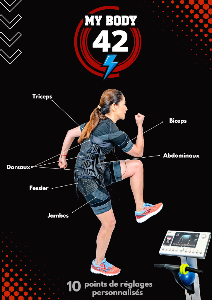 Chez MyBody42, l’électrostimulation musculaire (EMS) vous permet de renforcer votre corps, de retrouver la forme et d’atteindre vos objectifs en un minimum de temps. Grâce à des séances personnalisées et encadrées par un coach, chaque entraînement est ciblé, efficace et adapté à votre niveau, que vous soyez débutant ou sportif confirmé.